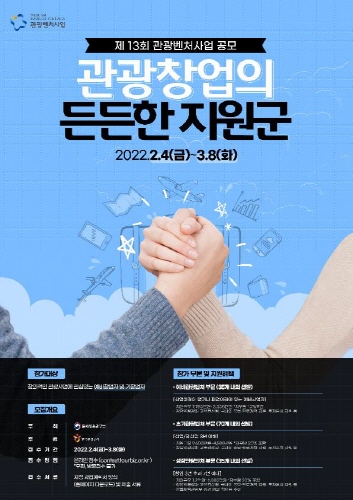 문화체육관광부(장관 황희, 이하 문체부)는 한국관광공사(사장 안영배, 이하 관광공사)와 함께 코로나19 장기화로 어려움을 겪고 있는 관광기업을 지원하고, 코로나19 이후 관광시장 회복을 준비하는 창의적이고 혁신적인 사업 아이디어를 지닌 관광 분야의 예비창업자와 창업기업을 육성하기 위해 '제13회 관광벤처사업 공모전'을 개최한다.