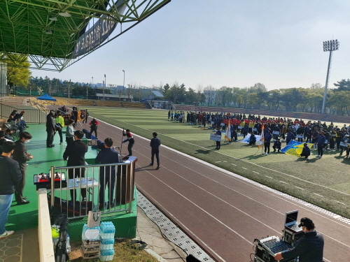 지난 17일 남동공단 근린공원 축구장에서 열린 축구대회 개회식에는 선수와 임원 등 500여 명이 참여해 3년 만의 생활체육대회 개막을 알렸다.